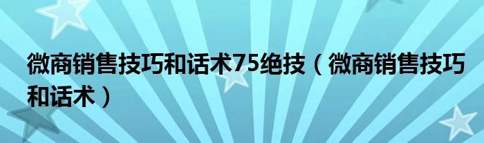 大家好,小晋来为大家解答以下问题,关于微商销售技巧和话术75绝技,微商销售技巧和话术很多人还不知道,今天让我们一起来看看吧!