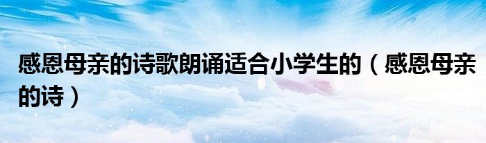大家好,小晋来为大家解答以下问题,关于感恩母亲的诗歌朗诵适合小学生的,感恩母亲的诗很多人还不知道,今天让我们一起来看看吧!