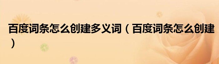 大家好,小晋来为大家解答以下问题,关于百度词条怎么创建多义词,百度词条怎么创建很多人还不知道,今天让我们一起来看看吧!