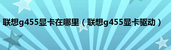联想g455显卡在哪里,联想g455显卡驱动很多人还不知道,乐乐来为大家解答以上问题,现在让我们一起来看看吧!