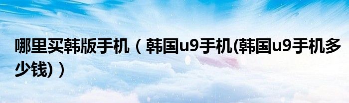 大家好,小常来为大家解答以上问题。哪里买韩版手机,韩国u9手机(韩国u9手机多少钱)很多人还不知道,现在让我们一起来看看吧!