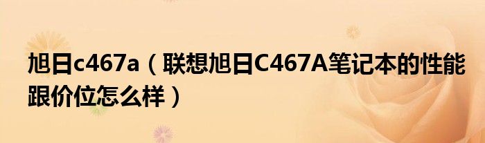 1,联想旭日C467A笔记本的性能跟价位怎么样:旭日是联想的学生用机```也就是属于联想的低端机型 性价比比较高 就一般的工作用够咯 但是你要打什么大型游戏啊``就比较困难咯
