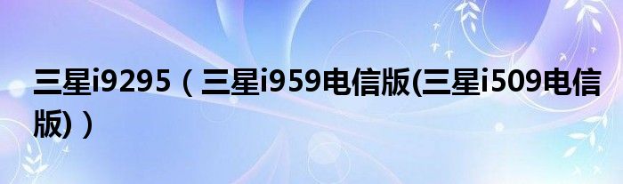 大家好,小常来为大家解答以上问题。三星i9295,三星i959电信版(三星i509电信版)很多人还不知道,现在让我们一起来看看吧!