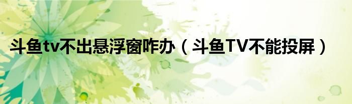 大家好,跳跳为你解答以上问题。斗鱼tv不出悬浮窗咋办,斗鱼TV不能投屏这个问题很多人还不知道,现在让我们一起来看看吧!