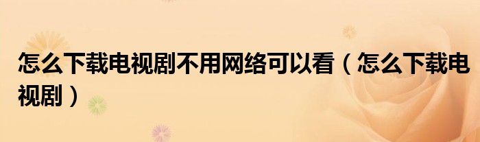 怎么下载电视剧不用网络可以看(怎么下载电视剧)
