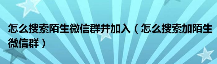 大家好,小晋来为大家解答以下问题,关于怎么搜索陌生微信群并加入,怎么搜索加陌生微信群很多人还不知道,今天让我们一起来看看吧!