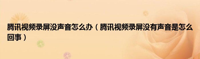 大家好,跳跳为你解答以上问题。腾讯视频录屏没声音怎么办,腾讯视频录屏没有声音是怎么回事这个问题很多人还不知道,现在让我们一起来看看吧!