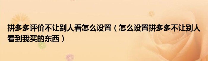 拼多多评价不让别人看怎么设置(怎么设置拼多多不让别人看到我买的东西)