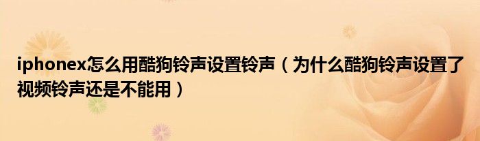 大家好,跳跳为你解答以上问题。iphonex怎么用酷狗铃声设置铃声,为什么酷狗铃声设置了视频铃声还是不能用这个问题很多人还不知道,现在让我们一起来看看吧!