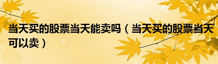 关于当天买的股票当天能卖吗,当天买的股票当天可以卖这个很多人还不知道,今天菲菲来为大家解答以上的问题,现在让我们一起来看看吧!