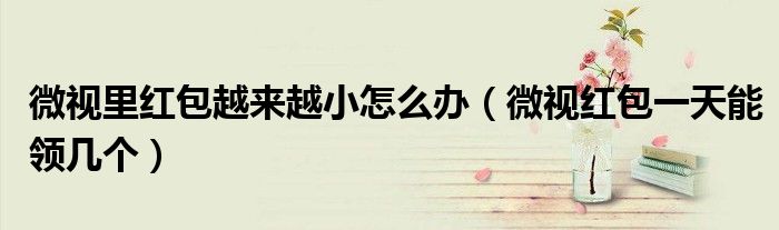 大家好,跳跳为你解答以上问题。微视里红包越来越小怎么办,微视红包一天能领几个这个问题很多人还不知道,现在让我们一起来看看吧!