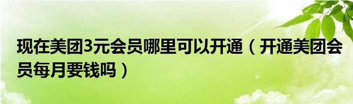 大家好,跳跳为你解答以上问题。现在美团3元会员哪里可以开通,开通美团会员每月要钱吗这个问题很多人还不知道,现在让我们一起来看看吧!