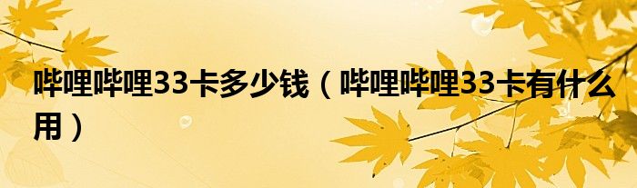 大家好,跳跳为你解答以上问题。哔哩哔哩33卡多少钱,哔哩哔哩33卡有什么用这个问题很多人还不知道,现在让我们一起来看看吧!