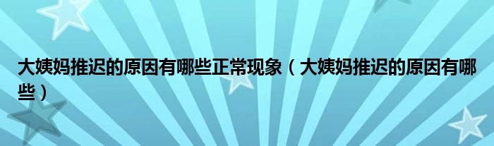 大家好,linda来为大家解答以上的问题。大姨妈推迟的原因有哪些正常现象,大姨妈推迟的原因有哪些很多人还不知道,现在让我们一起来看看吧!