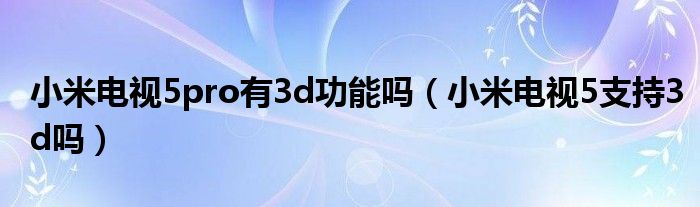 大家好,小叶为你解答以上问题。小米电视5pro有3d功能吗,小米电视5支持3d吗这个问题很多人还不知道,现在让我们一起来看看吧!
