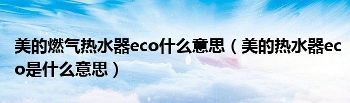 大家好,小叶为你解答以上问题。美的燃气热水器eco什么意思,美的热水器eco是什么意思这个问题很多人还不知道,现在让我们一起来看看吧!