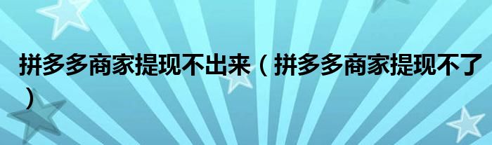 大家好,跳跳为你解答以上问题。拼多多商家提现不出来,拼多多商家提现不了这个问题很多人还不知道,现在让我们一起来看看吧!