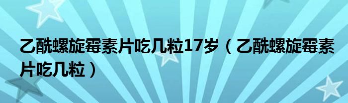 乙酰螺旋霉素片吃几粒17岁(乙酰螺旋霉素片吃几粒)