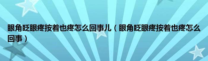 大家好,linda来为大家解答以上的问题。眼角眨眼疼按着也疼怎么回事儿,眼角眨眼疼按着也疼怎么回事很多人还不知道,现在让我们一起来看看吧!