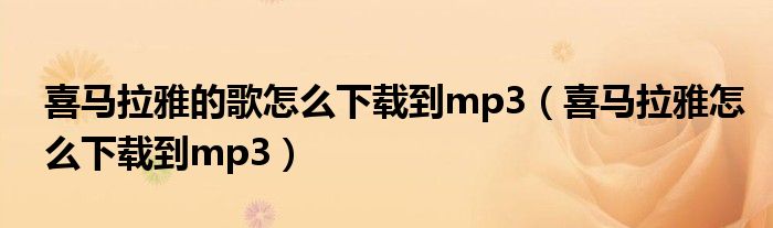 大家好,跳跳为你解答以上问题。喜马拉雅的歌怎么下载到mp3,喜马拉雅怎么下载到mp3这个问题很多人还不知道,现在让我们一起来看看吧!
