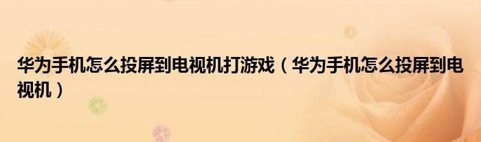 大家好,小叶为你解答以上问题。华为手机怎么投屏到电视机打游戏,华为手机怎么投屏到电视机这个问题很多人还不知道,现在让我们一起来看看吧!