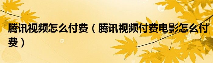 腾讯视频怎么付费(腾讯视频付费电影怎么付费)