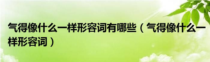 大家好,小晋来为大家解答以下问题,关于气得像什么一样形容词有哪些,气得像什么一样形容词很多人还不知道,今天让我们一起来看看吧!