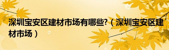 关于深圳宝安区建材市场有哪些?,深圳宝安区建材市场这个很多人还不知道,今天菲菲来为大家解答以上的问题,现在让我们一起来看看吧!