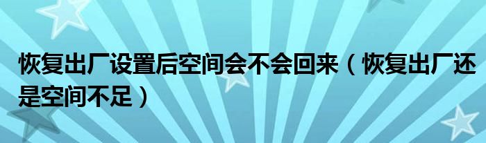 大家好,小晋来为大家解答以下问题,关于恢复出厂设置后空间会不会回来,恢复出厂还是空间不足很多人还不知道,今天让我们一起来看看吧!