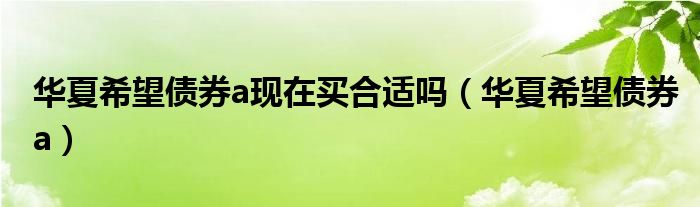 关于华夏希望债券a现在买合适吗,华夏希望债券a这个很多人还不知道,今天菲菲来为大家解答以上的问题,现在让我们一起来看看吧!