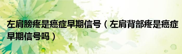 1、患者左肩背部的疼痛是否是癌症的早期信号,根据疼痛的原因和性质进行客观分析:1。