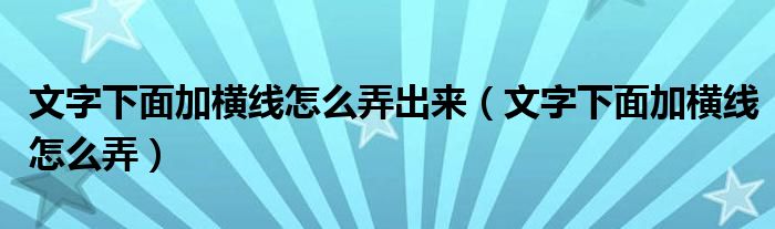 大家好,小晋来为大家解答以下问题,关于文字下面加横线怎么弄出来,文字下面加横线怎么弄很多人还不知道,今天让我们一起来看看吧!