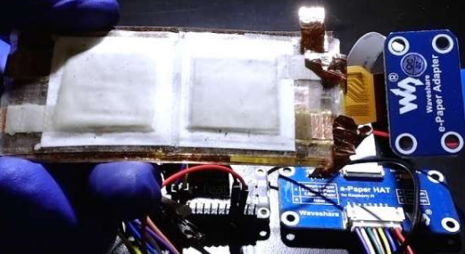 电池成功地为配备了微控制器和蓝牙模块的柔性显示系统供电。在这里,电池的性能也比市售的Li纽扣电池好。