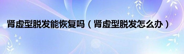 大家好,linda来为大家解答以上的问题。肾虚型脱发能恢复吗,肾虚型脱发怎么办很多人还不知道,现在让我们一起来看看吧!