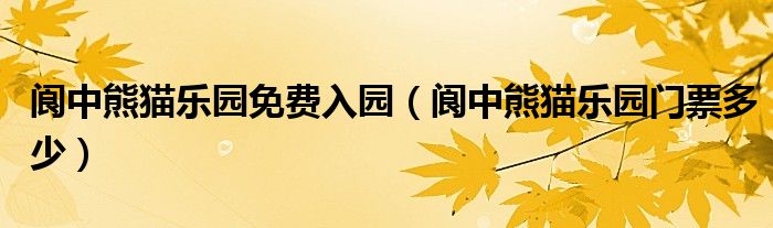 大家好,小晋来为大家解答以下问题,关于阆中熊猫乐园免费入园,阆中熊猫乐园门票多少很多人还不知道,今天让我们一起来看看吧!