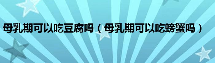 大家好,linda来为大家解答以上的问题。母乳期可以吃豆腐吗,母乳期可以吃螃蟹吗很多人还不知道,现在让我们一起来看看吧!