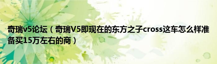 大家好,小常来为大家解答以下问题,对于奇瑞v5论坛,奇瑞V5即现在的东方之子cross这车怎么样准备买15万左右的商很多人还不知道,今天让我们一起来看看吧!