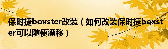 1,如何改装保时捷boxster可以随便漂移 :其实boxster本来就可以随便漂移了,你把ESP关上,转向时油门踩到底,就能漂移了