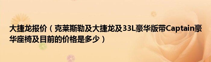 大家好,小常来为大家解答以下问题,对于大捷龙报价,克莱斯勒及大捷龙及33L豪华版带Captain豪华座椅及目前的价格是多少很多人还不知道,今天让我们一起来看看吧!