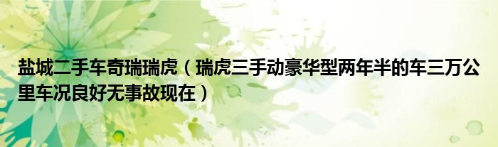 大家好,小常来为大家解答以下问题,对于盐城二手车奇瑞瑞虎,瑞虎三手动豪华型两年半的车三万公里车况良好无事故现在很多人还不知道,今天让我们一起来看看吧!
