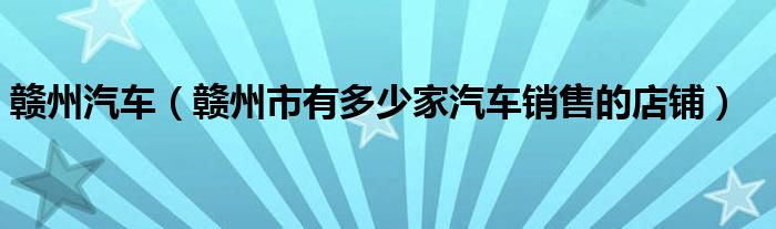 大家好,小常来为大家解答以下问题,对于赣州汽车,赣州市有多少家汽车销售的店铺很多人还不知道,今天让我们一起来看看吧!