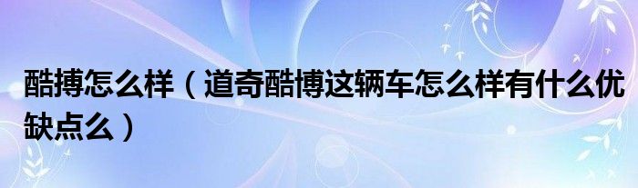 大家好,小常来为大家解答以下问题,对于酷搏怎么样,道奇酷博这辆车怎么样有什么优缺点么很多人还不知道,今天让我们一起来看看吧!
