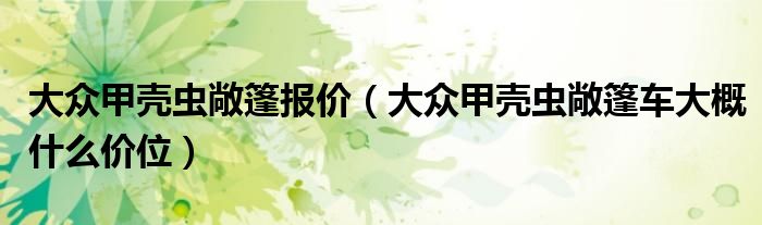 5,大众甲壳虫敞篷多少钱左右 :热门车型 排量 变速箱 指导价 二手车报价10款敞篷墨橘版 2.0豪华版 2.0L 手自一体 30.21万 14.50万起 09款敞篷 2.0顶配 2.0L 手自一体 30.5万 10.50万起 07款敞篷 2.0标配 2.0L 手自一体 27万 9.80万起