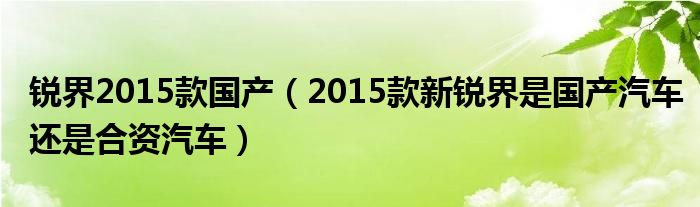 1,2015款新锐界是国产汽车还是合资汽车 :必须是合资汽车