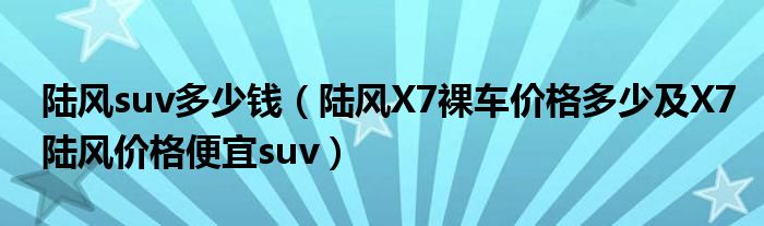 大家好,小常来为大家解答以下问题,对于陆风suv多少钱,陆风X7裸车价格多少及X7陆风价格便宜suv很多人还不知道,今天让我们一起来看看吧!
