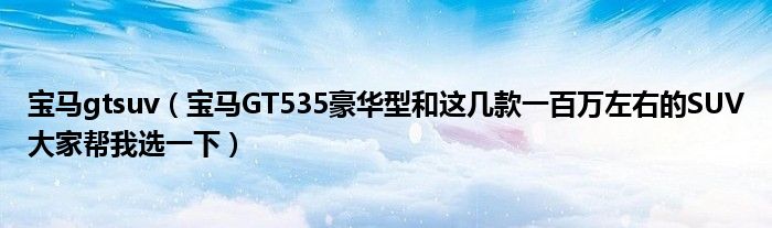 大家好,小常来为大家解答以下问题,对于宝马gtsuv,宝马GT535豪华型和这几款一百万左右的SUV大家帮我选一下很多人还不知道,今天让我们一起来看看吧!