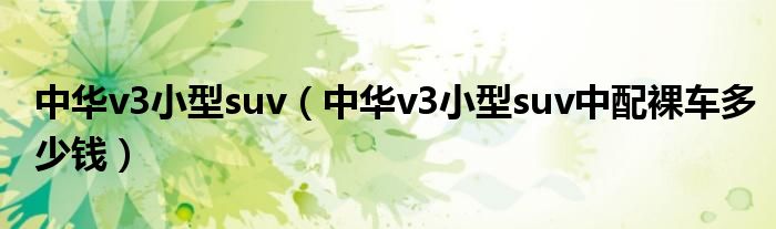 大家好,小常来为大家解答以下问题,对于中华v3小型suv,中华v3小型suv中配裸车多少钱很多人还不知道,今天让我们一起来看看吧!