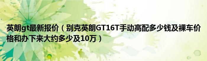 4,别克英朗gt报价多少:2013款 1.6L 手动 舒适版 手动 13.27万 最低报价 10.47万 2013款 1.6L 手动 进取版 手动 13.77万 最低报价 10.97万 2013款 1.6L 手自一体 舒适版 手自一体 14.77万 最低报价 11.97万 2013款 1.6L 手自一体 时尚版 手自一体 15.27万 最低报价 12.47万 2013款 1.6T 时尚运动款 手自一体 17.73万 最低报价 14.93万2013款 1.6T 手自一体 新锐运动版 手自一体 18.73万 15.93万 2013款 1.8L 自动时尚款 手自一体 16.53万 最低报价 13.73万上面是报价,到店的话还可以还点的,我买的1.6时尚运动款 全部办好16.8W左右,不过我买了一年多了现在应该会便宜一些