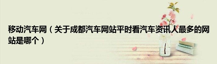 大家好,小常来为大家解答以下问题,对于移动汽车网,关于成都汽车网站平时看汽车资讯人最多的网站是哪个很多人还不知道,今天让我们一起来看看吧!