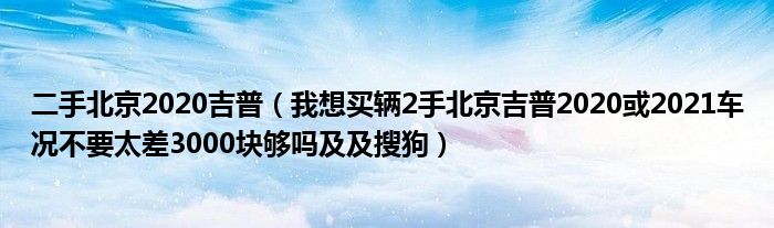 大家好,小常来为大家解答以下问题,对于二手北京2020吉普,我想买辆2手北京吉普2020或2021车况不要太差3000块够吗及及搜狗很多人还不知道,今天让我们一起来看看吧!